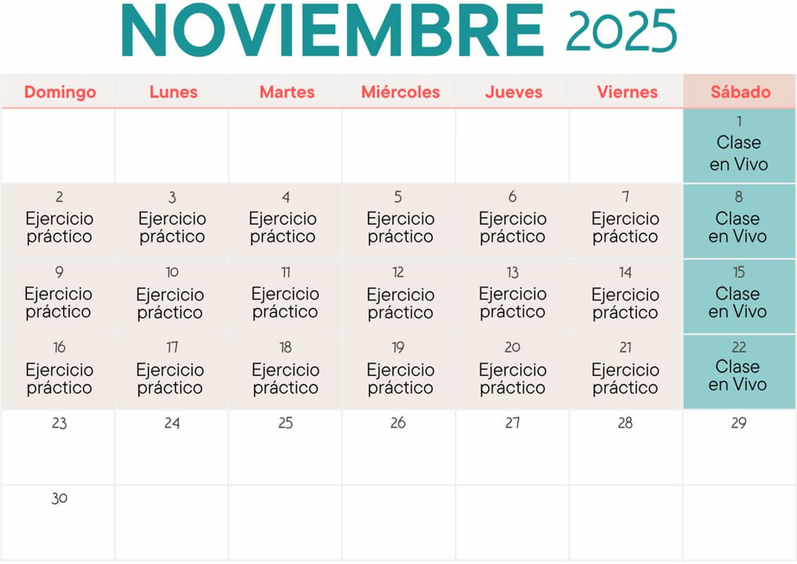 🗓️ Clases en vivo todos los sábados (1, 8, 15 y 22 de noviembre)